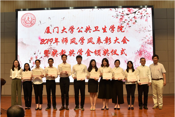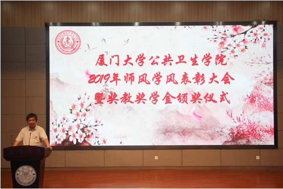 创建良好师风学风,树立先进典型,凝聚榜样力量。5月18日下午,作为公共卫生学院2019年良好师风学风攻坚战的重要举措——师风学风表彰大会暨奖教奖学金颁奖仪式在翔安校区图书馆报告厅举行。养生堂有限公司生物医药业务人力资源部总监彭琴,上海西宝生物科技股份有限公司董事长、总经理张文华,广州万孚生物技术股份有限公司副总经理罗宏,附属医院、实地基地、实践基等单位代表及学院师生参加大会。大会由学院党委副书记黄兆君主持。