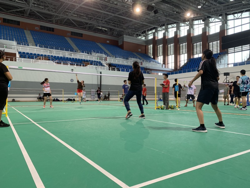 比赛开始前,选手们摩拳擦掌地进行热身。抽签决定好比赛对阵后,本次羽毛球交流赛决赛正式开始。