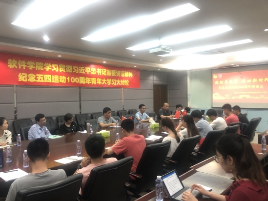 4月30日下午4点30分,软件学院2018级研究生团支部在学院A306会议室举行了主题为“激扬青春梦,建功新时代”学习贯彻习近平总书记重要讲话精神纪念五四运动100周年座谈会的大学习大讨论活动。软件学院党委副书记史亮,软件学院青年教师代表王美红副教授、曾鸣副教授,学院团委副书记李加冕、李绍玉,辅导员刘茜参加了座谈会。