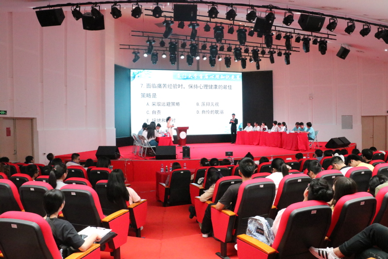 本次心理知识竞赛由校心理咨询与教育中心主办,医学院团委、公共事务学院团委承办,阳光心理志愿者团队协办。竞赛于四月初启动,分为初赛、复赛和决赛,共吸引了来自29个学院的1531人参与。经过层层选拔,共有六支队伍在激烈的竞争中脱颖而出,进入决赛。决赛共分为必答题、抢答题和选答题。比赛过程中,台上队伍竞争激烈、比拼紧张刺激,选手们聚精会神、全力以赴,充分展现各学院学子风采。同时观众们也有机会参与答题,获取精美纪念品。台上台下积极参与,气氛十分火热。
