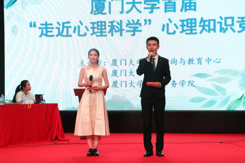 4月27日下午,厦门大学首届“走近心理科学”心理知识竞赛决赛在翔安校区学生活动中心B207顺利举办。学生工作部(处)副处长高斌、心理咨询与教育中心主任赖丹凤、公共事务学院党委副书记刘钟南、医学院党委副书记杨建中、教育研究院助理教授林敏、翔安校区团工委秘书石林伟、各学院辅导员及学生代表等100余名师生参加了本次决赛。
