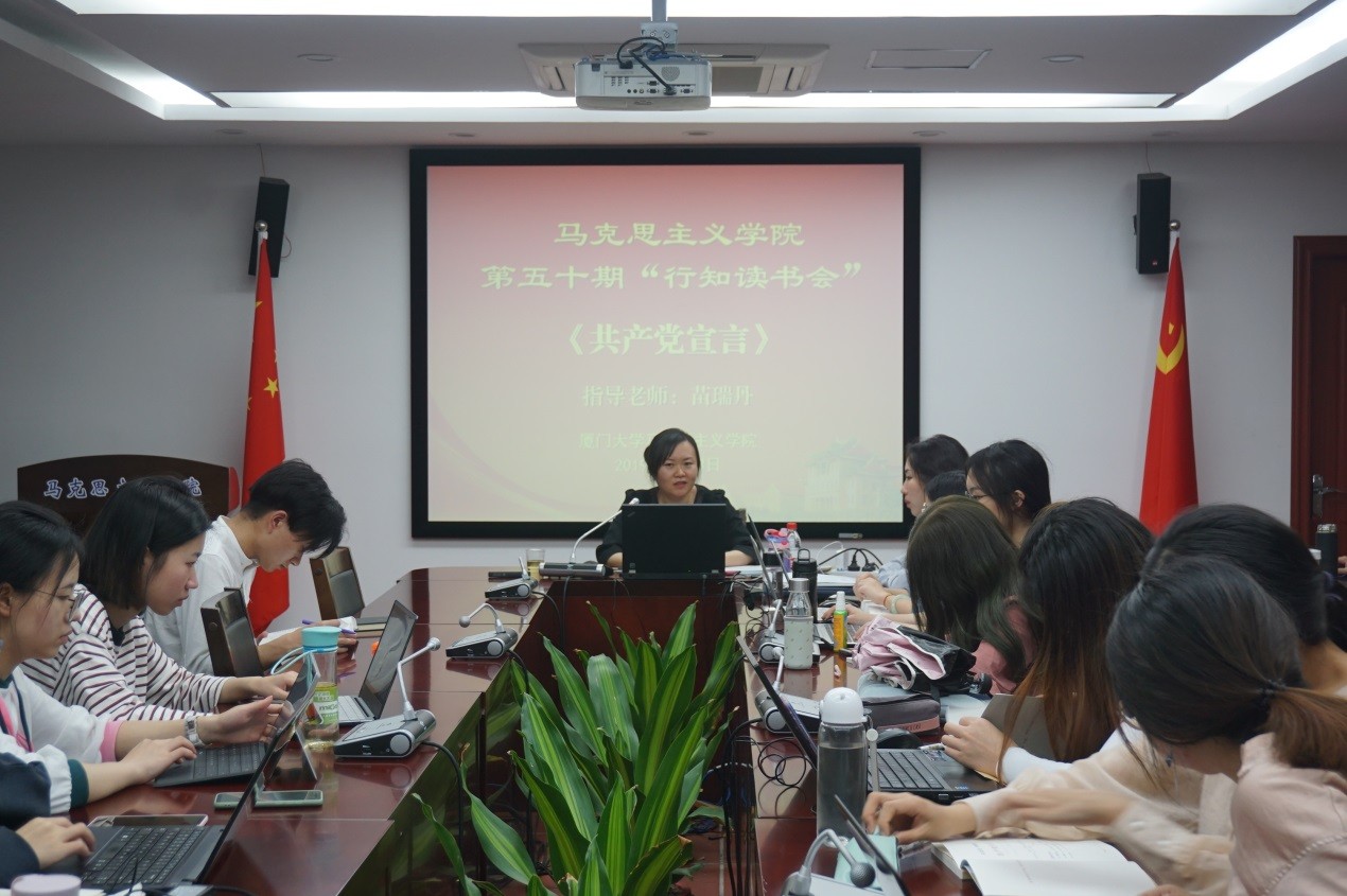 4月24日晚上,马克思主义学院第50期“行知读书会”在囊萤楼302会议室顺利举行。本期读书会由思想政治教育教研部的苗瑞丹老师指导,所读书目是《共产党宣言》。本次读书会由学术部副部长程紫琪主持,2018级全体硕士研究生参加。