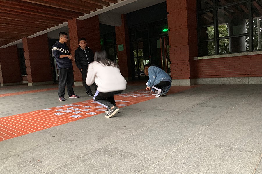 随后,心理委员们还参与了“驿站传输”游戏和“扑克排序”游戏。“驿站传输”游戏考验了大家的团队沟通与交流能力。各心理委员被分到不同的小组,通过背对背传递的方式将数字由队首传至队尾,用时最短者获胜。活动现场,各组成员均紧密合作,配合默契;不同小组间更是各显身手,制定了多种多样的“战略战术”,你追我赶,“战况”十分精彩。在“扑克排序”游戏中,同学们则凭借记忆,将摆在地上的乱序扑克牌顺序复原,用时最短者获得胜利。这一游戏既充满趣味又考验技巧,大家都玩得不亦乐乎。