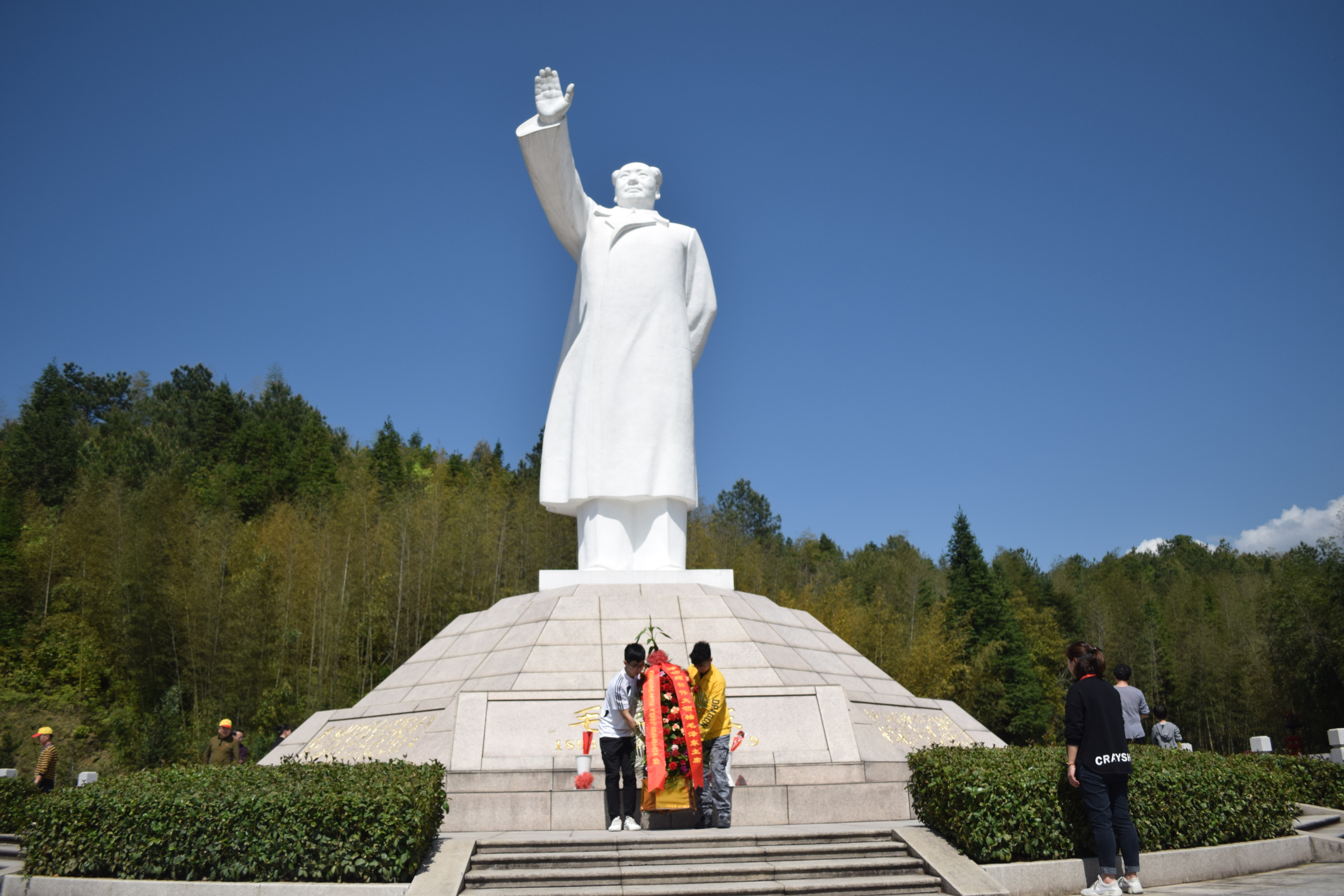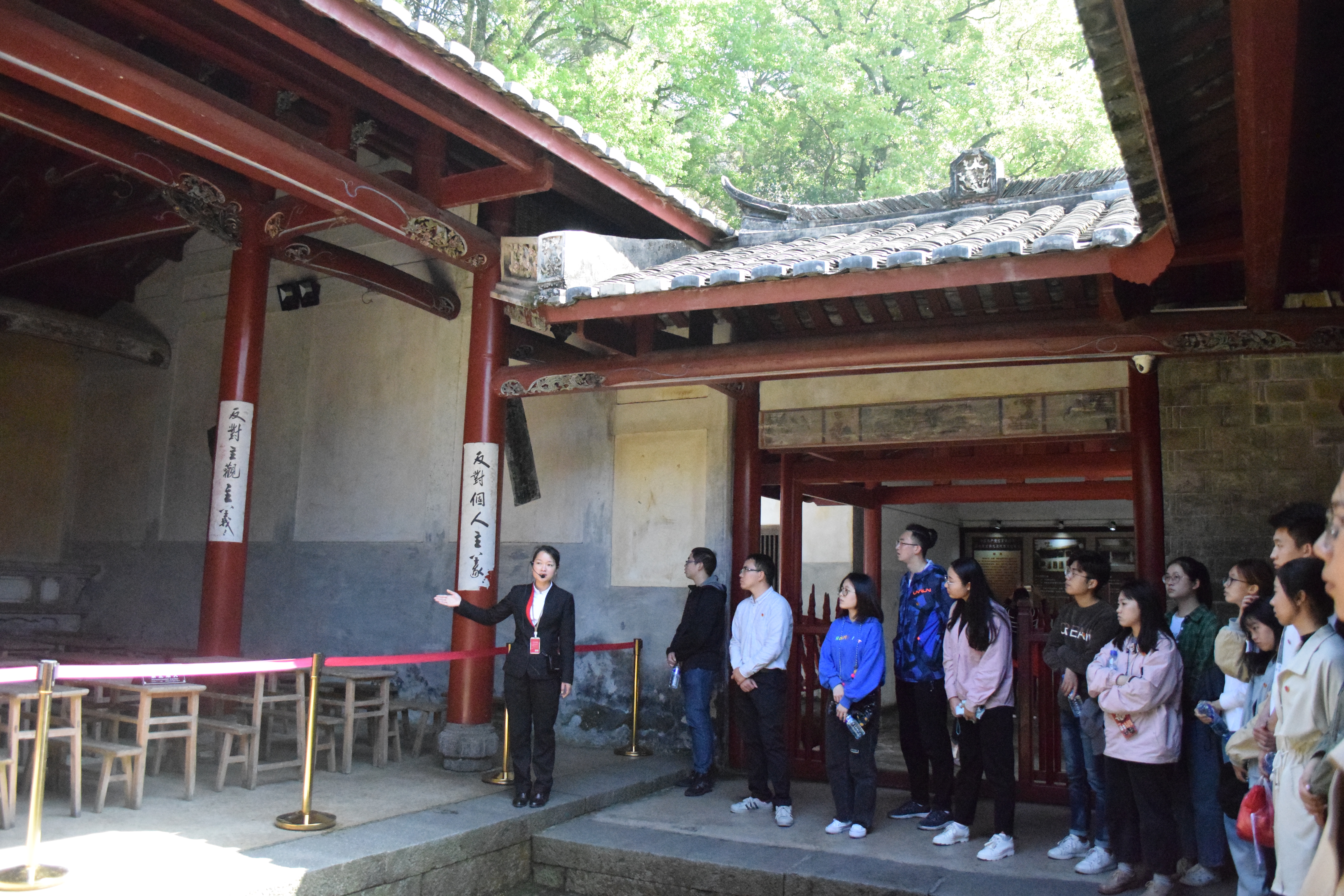 古田是中国共产党的革命圣地,古田会议确立了思想建党、政治建军的原则,确立了党对军队工作的绝对领导,在中国共产党和工农红军的发展史上有着极其重要的意义。全体成员在讲解员带领下依次参观了古田会议会址“廖家祠堂”、毛泽东《星星之火,可以燎原》写作旧址、古田会议纪念馆。通过现场观学,了解古田会议召开的背景、意义,并深入学习了古田会议精神;此外,在毛主席雕像前,全体肃立鞠躬,学生代表上前献花,向毛主席致以最崇高的敬意。雕像纪念碑上所镌刻的毛主席的 “红军不怕远征难,万水千山只等闲”等诗词,字里行间不仅展示着毛主席的文采,更凸显出革命者们坚韧不拔的革命意志。