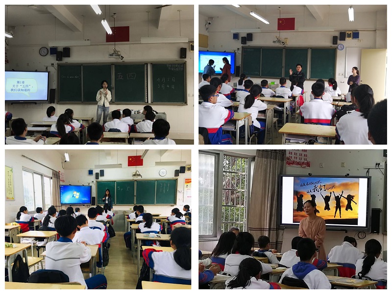 初一(3)班的教学则从中国历史回顾开始,引出了“五四”青年节的由来。随后,以“扣好人生第一颗扣子”为切入点,志愿者带大家学习了近五年来习近平总书记在五四青年节期间给各大高校青年的寄语。最后,志愿者借用习近平总书记给意大利罗马住读学校师生的回信叮嘱学生:“希望三位老师每次带来的分享都能让在座的学生看到更加广阔的世界,更加多元的文化价值。青春总是与梦想相伴而行,愿在座每一位青春正好,不负韶华,实现自己的理想。”
