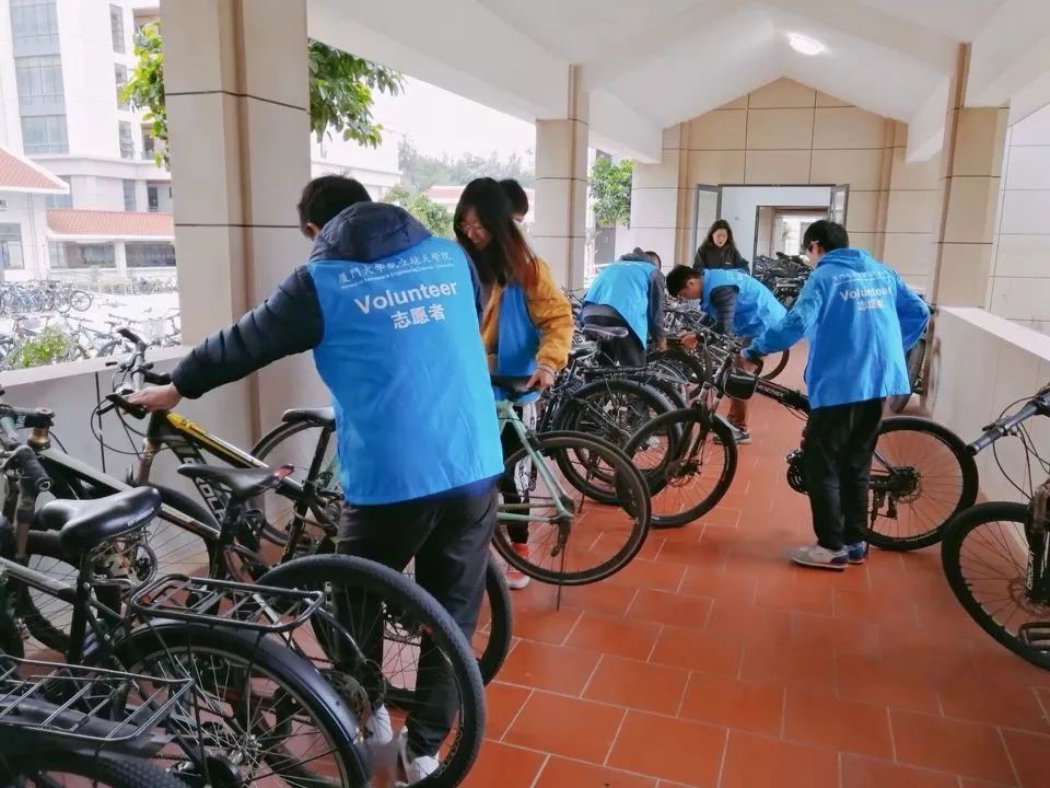 3月17日18级大类二班的志愿者们来到自行车成堆的学武楼前,将在妖风中“可倒一定连续”的自行车一一扶起,形成一道美丽的风景。
