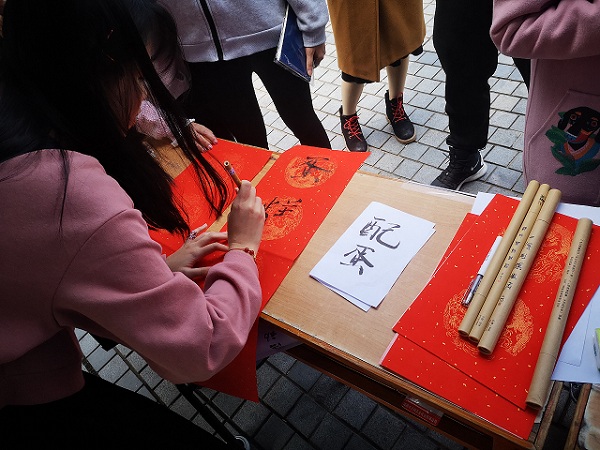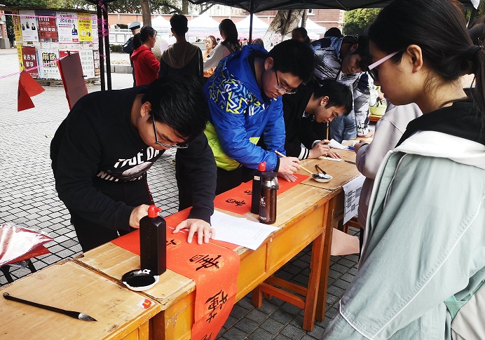 参与活动的同学在现场体验对联书写(化学化工学院生活部/摄)