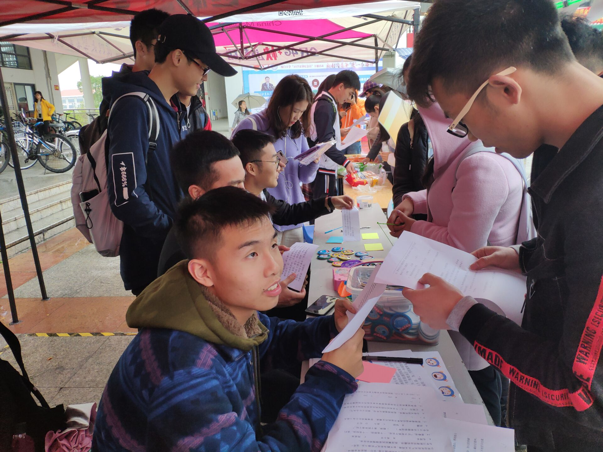 能源学院青工部同学们提前布置好了摊位,张贴起“源梦未来——基于STEM教育探索能源知识普及活动”的海报并展出“源梦未来”和厦门科技馆志愿服务等志愿服务活动照片,向摊位前来来往往的同学介绍能源学院的品牌志愿活动,充分展现了能源学院志愿者的优秀风采。