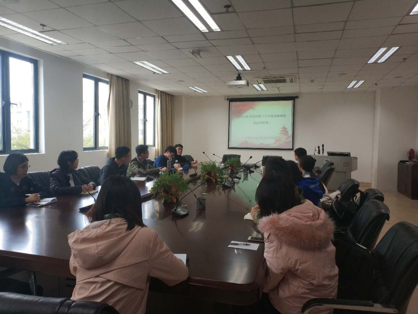 2月26日中午,环境与生态学院学生组织临时党支部在金泉楼A226会议室开展学习习近平总书记给我校管理学院潘维廉教授的重要回信精神。环境与生态学院团委书记林明华、辅导员蔡群飞以及学生组织临时党支部全体成员参加座谈。