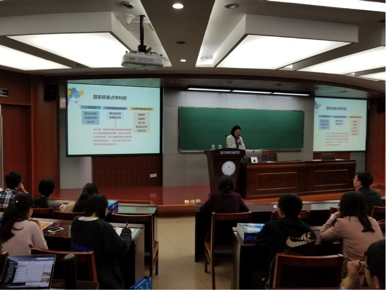 黄晨希老师从学科介绍、师资力量、人才培养专业设置、培养特色和学生成果等方面介绍了厦大经济学科的基本情况。厦大经济学科由经济学院、王亚南经济研究院和邹至庄经济研究中心构成“三位一体”的模式。经济学科已成为厦门大学最重要的优势学科和支柱学科之一,也是我国经济研究的学术重镇。经济学科探索“宽口径、厚基础”与“个性化、多样化”相结合的人才培养模式,致力于培养具有深厚经济学理论素养,马克思主义经济学与现代西方经济学双重理论功底,具有诚实守信的品格、具有国际视野和国际竞争能力、学术与应用并重的开拓型、创新型、复合型人才。黄晨希指出同学们在返校宣讲时,可以结合学院的基本情况和个人学习生活体会进行宣讲。
