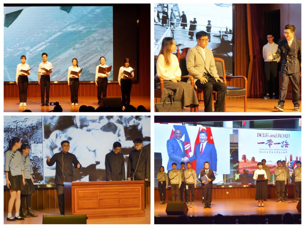 情景剧《赤子归国》,生动再现钱学森回国时经历的种种困难,纵然被囚禁、被威胁,但钱学森不惧危险,怀着对祖国的一片赤诚最终回到祖国母亲的怀抱。“祖国啊,我回来了!”一声发自肺腑的呐喊,感动得在场观众热泪盈眶。诗朗诵《郭永怀》,介绍了这位两弹一星功勋奖章获得者扎根边疆、奉献科研的经历, “郭永怀没有离去,郭永怀他不会离去!人民的科学家,永远都活在人民的心里!”饱含深情的朗诵表达出同学们的敬仰和怀念。情景剧《蜡炬不成灰》讲述了西安交通大学“西迁人”的故事,“党让我们去哪里,我们背上行囊就去哪里。”他们胸怀大局,无私奉献,弘扬传统,艰苦创业,树立起一座不朽的精神丰碑。情景剧《邓稼先》再现了烽火年代的邓稼先隐姓埋名,把生命的种子播进大西北浩瀚的沙漠的感人事迹。多少次冲锋陷阵,引爆排险,多少次辐射伤害,通宵达旦,邓稼先用生命完成了对祖国的承诺。“长江,长城,黄山,黄河,在我胸中重千斤。不论何时,不论何地,心中一样亲。”歌曲《我的中国心》唱出了大家对祖国的眷恋与深情,点燃了在场同学们的爱国之情,温热了大家共同的“中国心”。