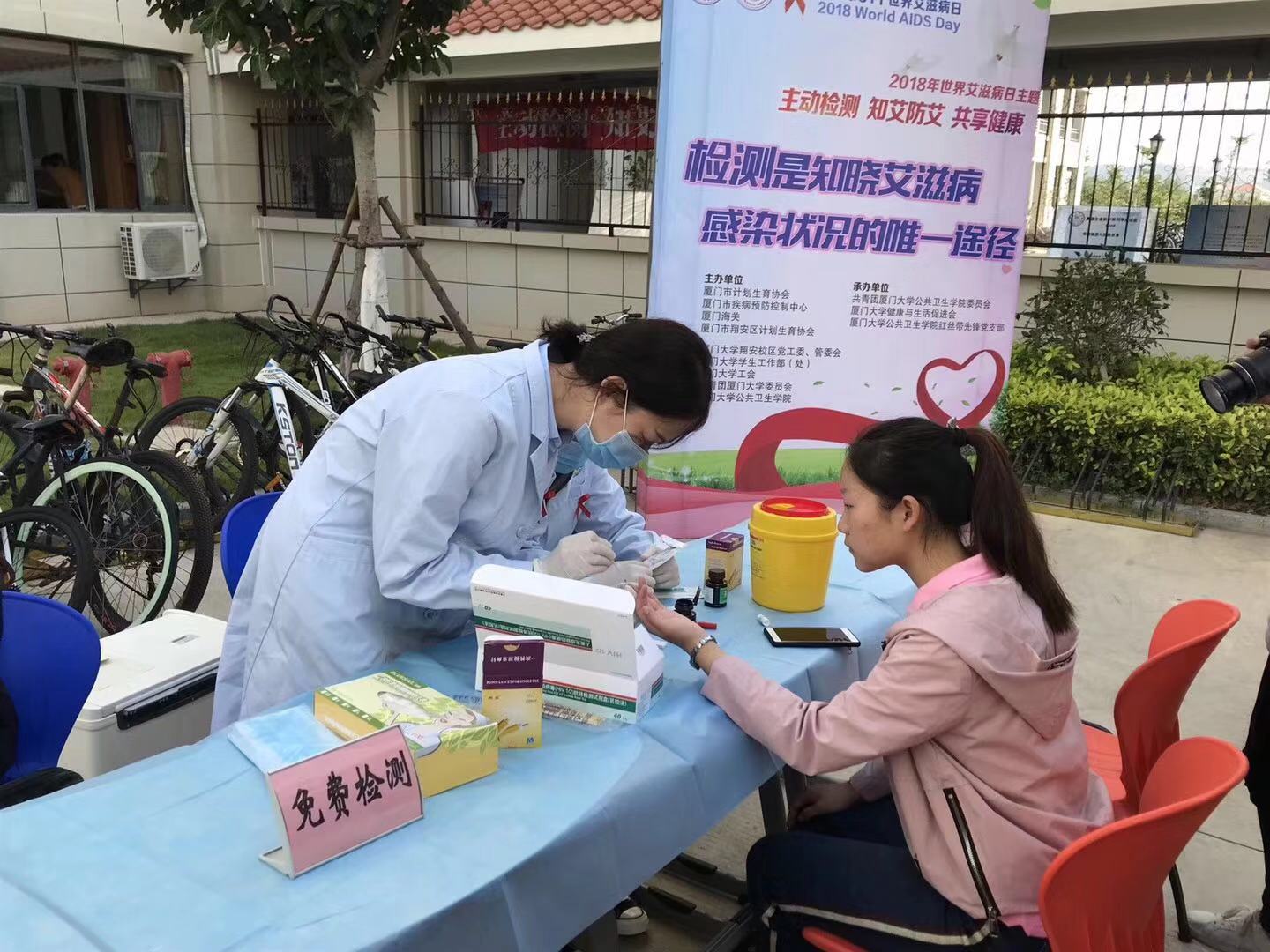 12月1日是第31个“世界艾滋病日”。当天,厦门大学翔安校区党工委、管委会,厦门大学工会,学生工作部(处),共青团厦门大学委员会,公共卫生学院联合厦门市计划生育协会、厦门市疾病预防控制中心、厦门海关及翔安区计划生育协会,在翔安校区香山书院共同举办“主动检测,知艾防艾,共享健康”为主题的宣传活动,宣传和普及预防艾滋病知识。