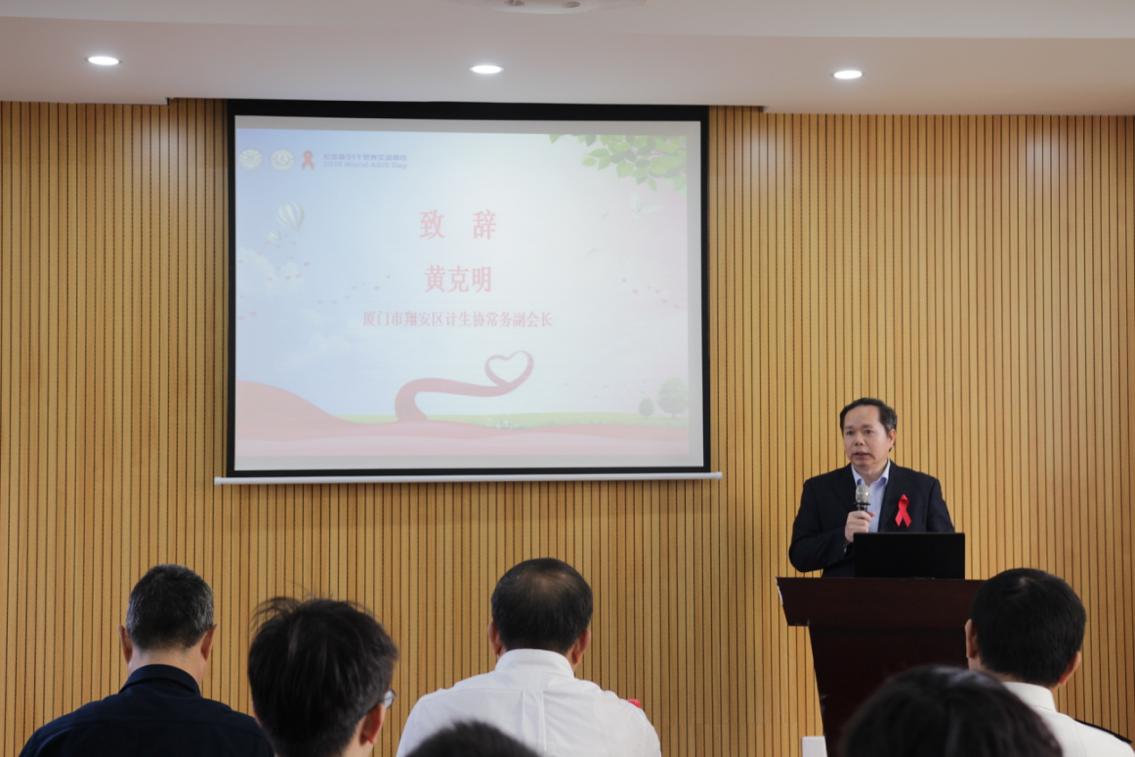 校长助理、翔安校区党工委书记、管委会主任陈光,厦门市计划生育协会办公室主任谢清平、翔安区计划生育协会常务副会长黄克明、厦门海关卫生处副处长林为亮,公共卫生学院党委书记张琥、副书记黄兆君、副院长林忠宁等参加上午的宣传活动。黄克明为活动致辞,强调全社会特别是广大青年大学生要从我做起,从现在做起,了解艾滋病知识,进一步提高防范意识,营造健康生活环境,相互关爱,共享生命。陈光、谢清平、林为亮共同为厦门大学青春健康教育基地揭牌。