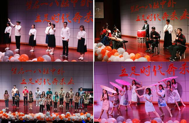 海外教育学院夏长仓老师和来自法国、保加利亚、菲律宾、俄罗斯四个国家的留学生为大家展示了太极拳和长拳刚柔并济、动中有静的独特魅力;2018级汉硕女生联袂带来的旗袍秀《风华绝代》唯美惊艳,让人感受到了中国传统服饰之美;来自13个国家的留学生们带来了八语合唱《夜空中最亮的星》,把晚会气氛推向了高潮,歌曲触动人心,对中华文化的热爱就像那夜空中最亮的星,将在未来的学习生涯上指引中外学子不断前行。