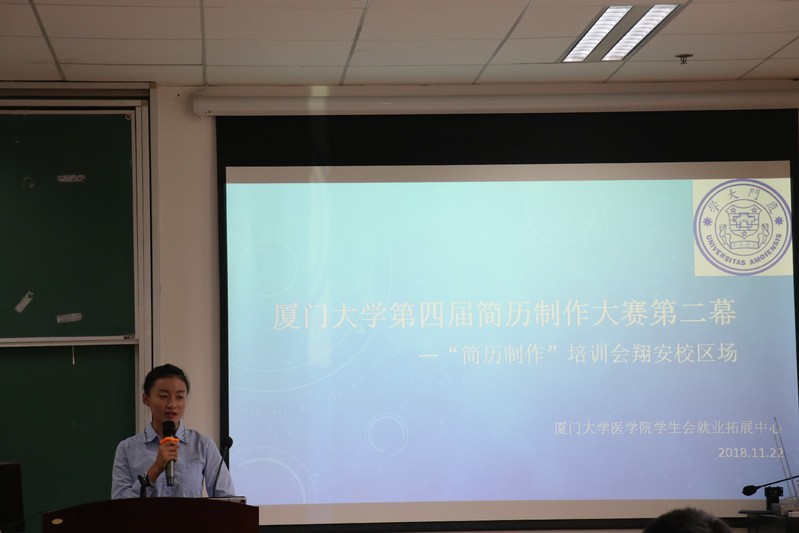 11月22日中午厦门大学第四届简历制作大赛之“简历制作培训会”在翔安校区爱礼楼104室成功举办。本次活动由厦门大学学生处就业创业指导中心主办,医学院就业拓展中心承办。