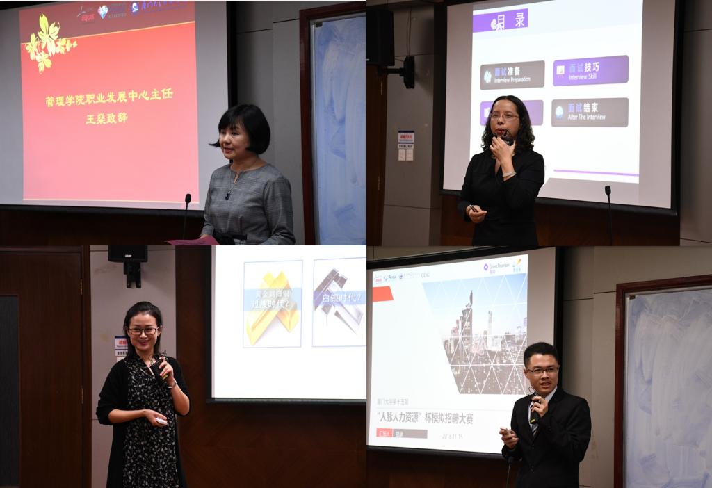 大赛仪式到此结束,仪式结束后,企业代表张丽娟女士和何婷女士就面试技巧和职业规划分别进行了实用丰富且有趣的分享。两位代表的分享开阔了各位同学的眼界,解答了即将步入职场的大学生关于择业就业的疑问,为厦大学生未来的面试提供了经验借鉴。