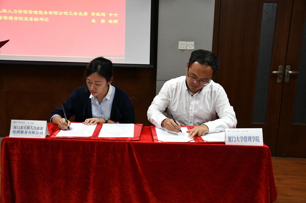 随后,管理学院党委副书记戴蓥、厦门市人脉人力资源管理服务有限公司工会主席黄敏超分别代表校企双方签署大赛赞助协议,校学生工作处副处长高斌宣布大赛正式启动。