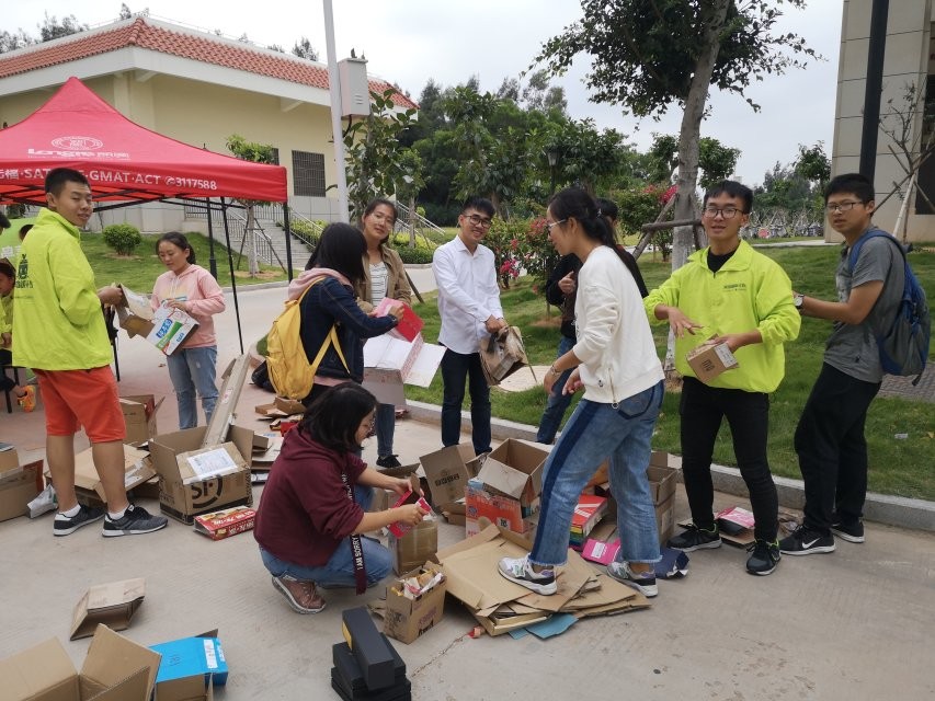 前期有效的宣传,吸引了众多同学的参与,他们所“囤”的纸箱也着实让志愿者大开眼界,不得不说双十一果然是全球购物狂欢节,同时这个现象也从侧面肯定了我们举办本次活动的高度可行性,我们希望此次活动不仅能够将快递纸箱进行重复利用,同时也希望能够将环保理念灌输给更多同学,为美化翔安校园,建设美丽中国贡献出一份力量。