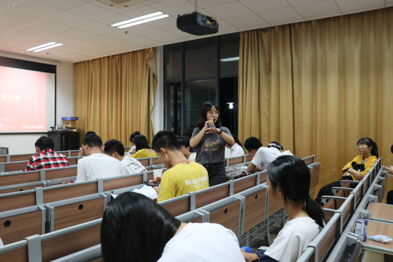 首先,主持人朱楷同学介绍了在场嘉宾和本次大会的议程。会议的第一项议程:王骥洲老师为本次大会致词。当王老师问及新生在学业上是否有困难,同学们一致回答“有困难”。王老师提出大学和高中有很大不同:“大学期间,关键是要发挥你们自觉和主动的精神!”此外,王老师还对代理班主任提出要多给海外生指导和帮助。最后,王骥洲祝愿代理班主任活动取得圆满成功。
