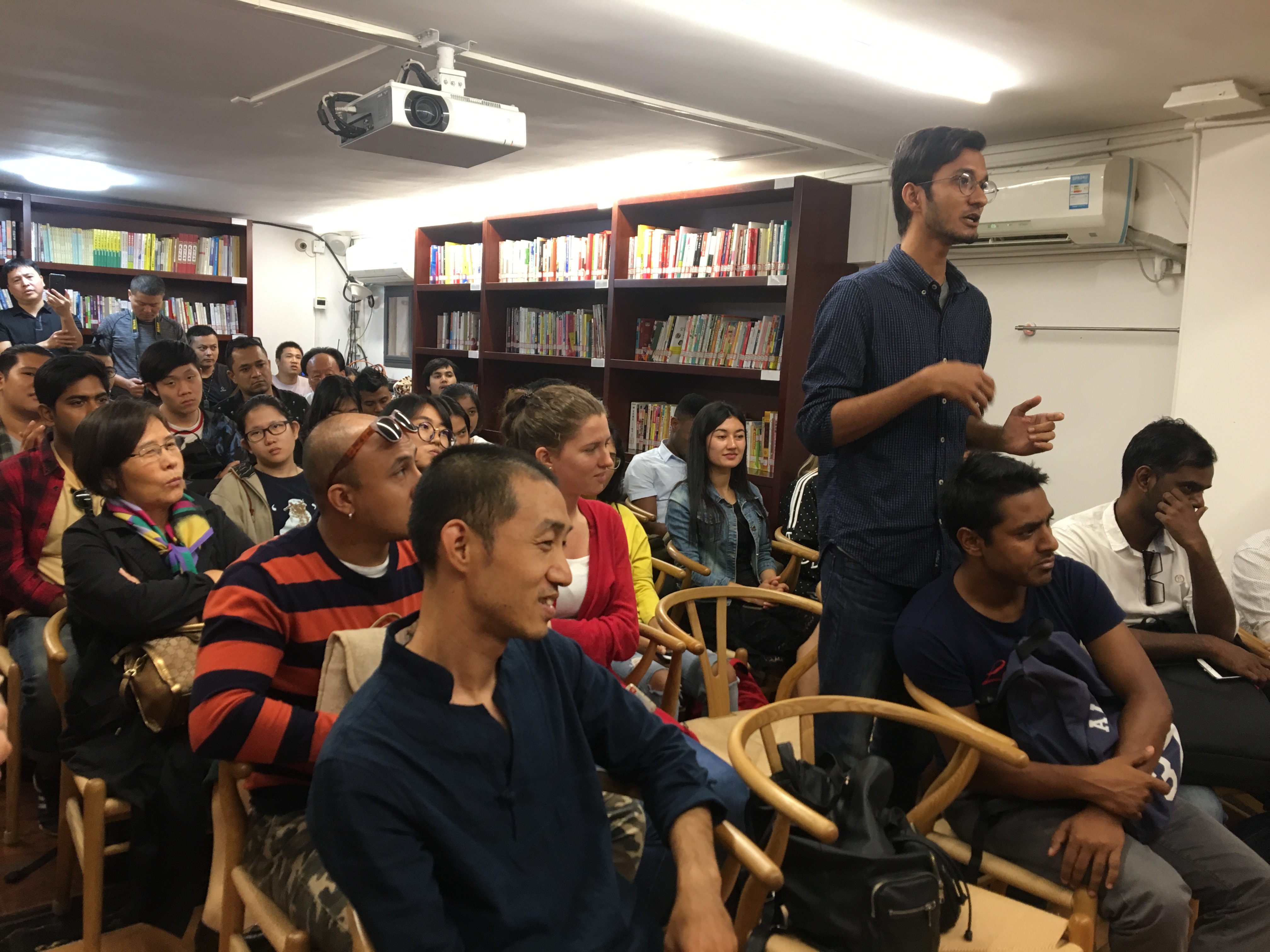 肖克凡老师以“为何大多数中国人高个子驼背”的例子为切入点,介绍了中国“人”的“共性”文化。他建议留学生们,来到中国,不仅要读书,也要读人,多和中国人交朋友。因为每一个人,都有不同的生活版本,这就是独一无二的文学作品。当来自尼日利亚的刘健坤问到如何保持阅读的习惯时,肖老师建议大家在学习的过程中,一定要永远保持一颗好奇之心,这是接受教育的第一步。以自己原点,对于未曾了解过的知识,要主动去学习,这样才能致使学习的渠道呈放射状,再汇集到自身,不断进步。
