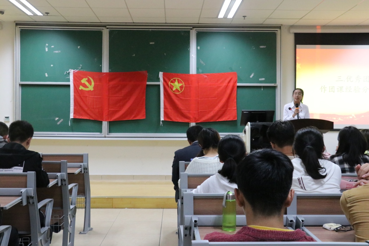 接着,优秀团支部上台进行经验分享。大会邀请到了邓连邦、庄玉倩和李雨婷三位同学进行演讲,她们提到了自己初次接手工作时的懵懂,讲到了自己一次次地反思和获取经验的过程,最终才取得了今天的成就。她们还回忆了自己曾经组织的印象深刻的活动,这些活动对她们来说是意义非凡的,是她们一辈子的财富。