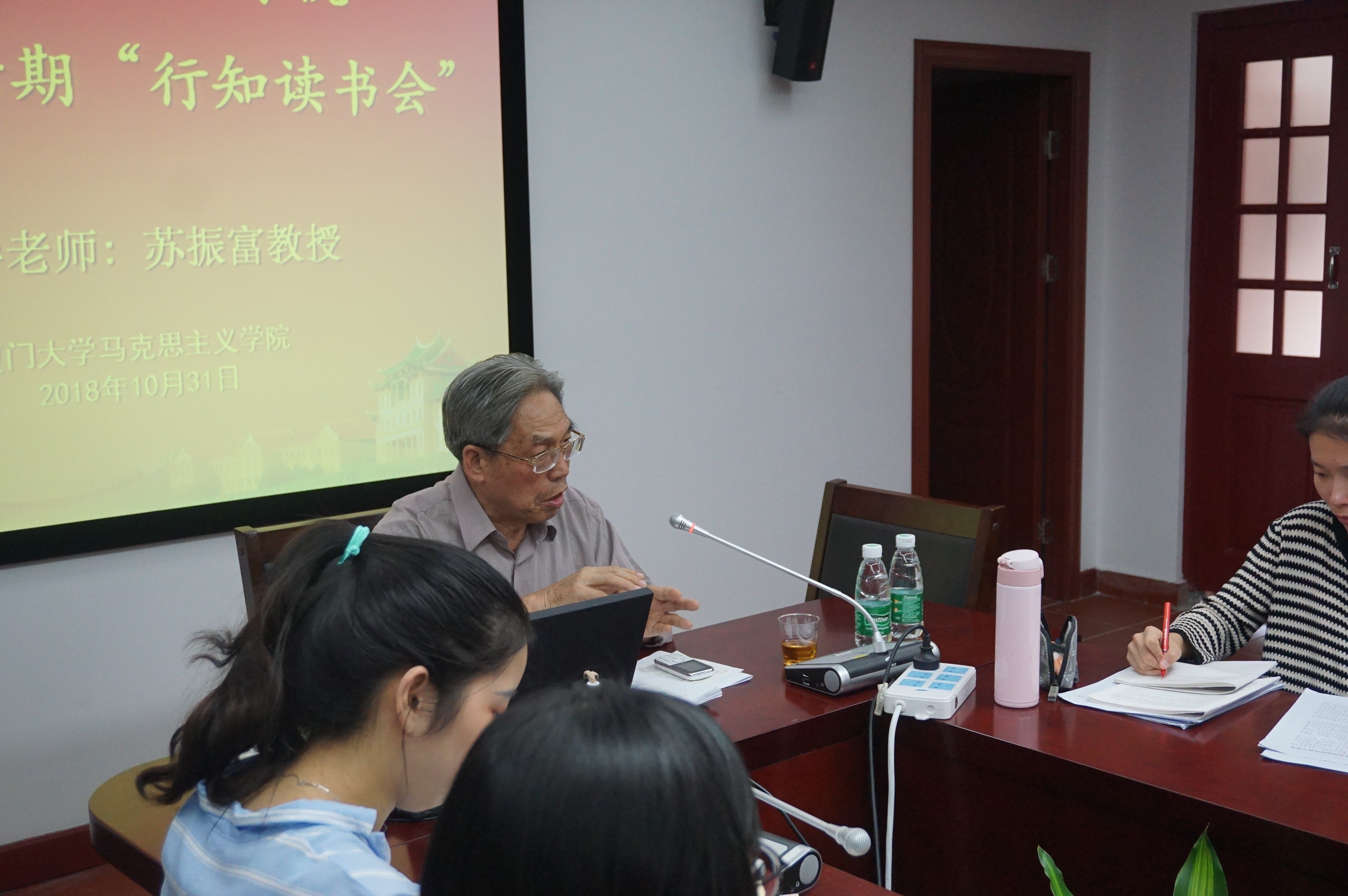 2018年10月31日下午,马克思主义学院第46期“知行读书会”在囊萤楼302顺利举行,本期读书会邀请到了苏振富教授为同学们讲解指导。会议由研究生会学术部副部长程紫琪同学主持。