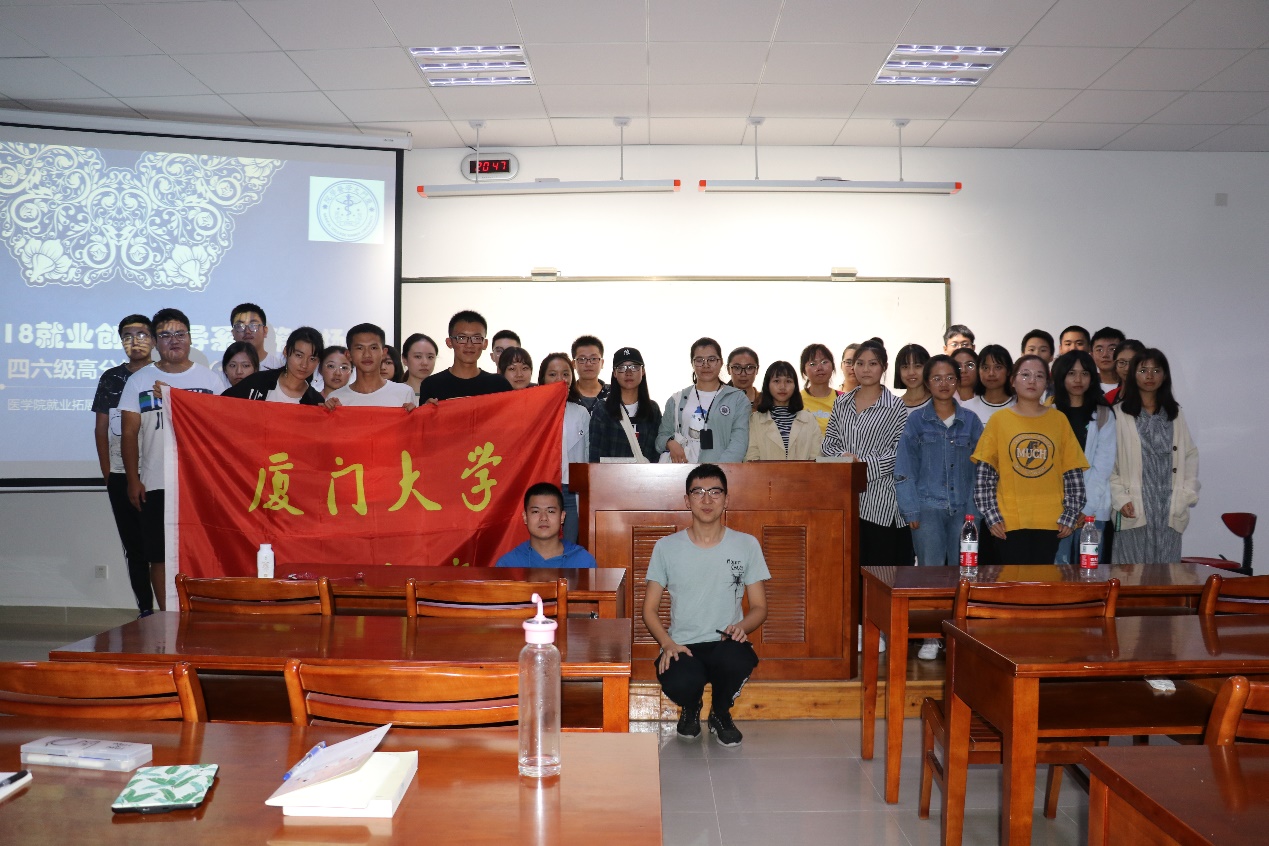 两位同学的讲演结束了,整个教室瞬时间响起了热烈的鼓掌声,阙梦茹主持大家同两位演讲嘉宾进行合影留念,大家纷纷走上演讲台,让相机记录下了他们幸福的刹那。