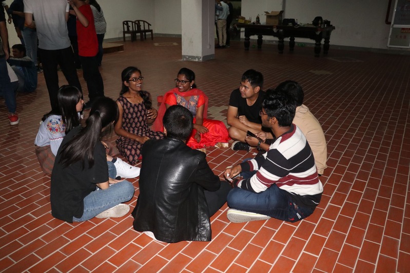 晚上八点,海外新生陆续到来,海外生联络部成员热情地送上精心准备的礼品并组织海外新生们抽签。接着,海外新生们在欢快的音乐氛围下畅谈,合影和舞蹈。待参加活动的海外新生到齐后,海外生联络部部员开始讲解游戏规则。