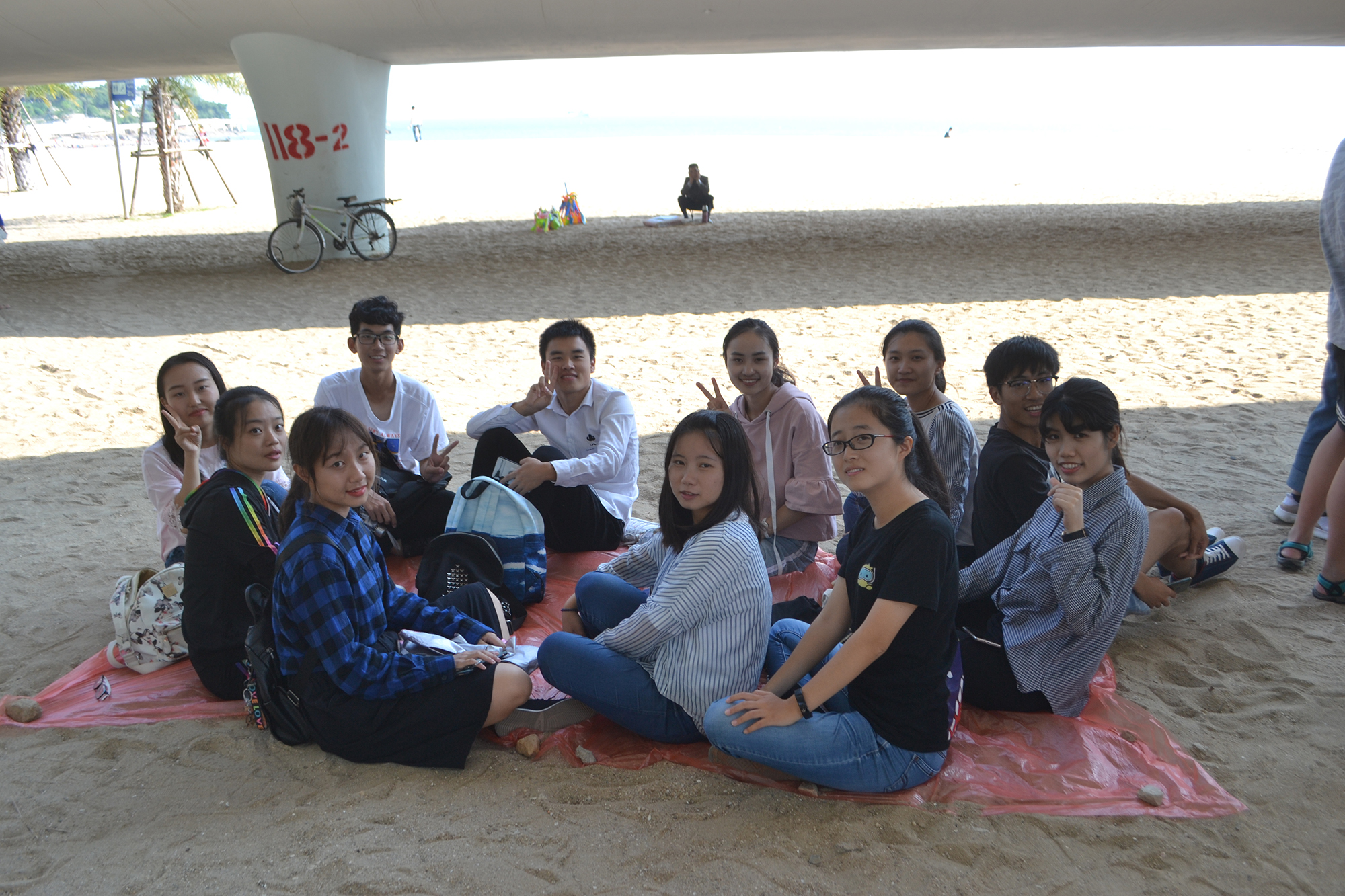 即使烈日骄阳也挡不住青协人欢聚的热情。下午两点三十分,青协全员在白城沙滩的西边集合完毕,让人期待已久的素拓活动准时开始。