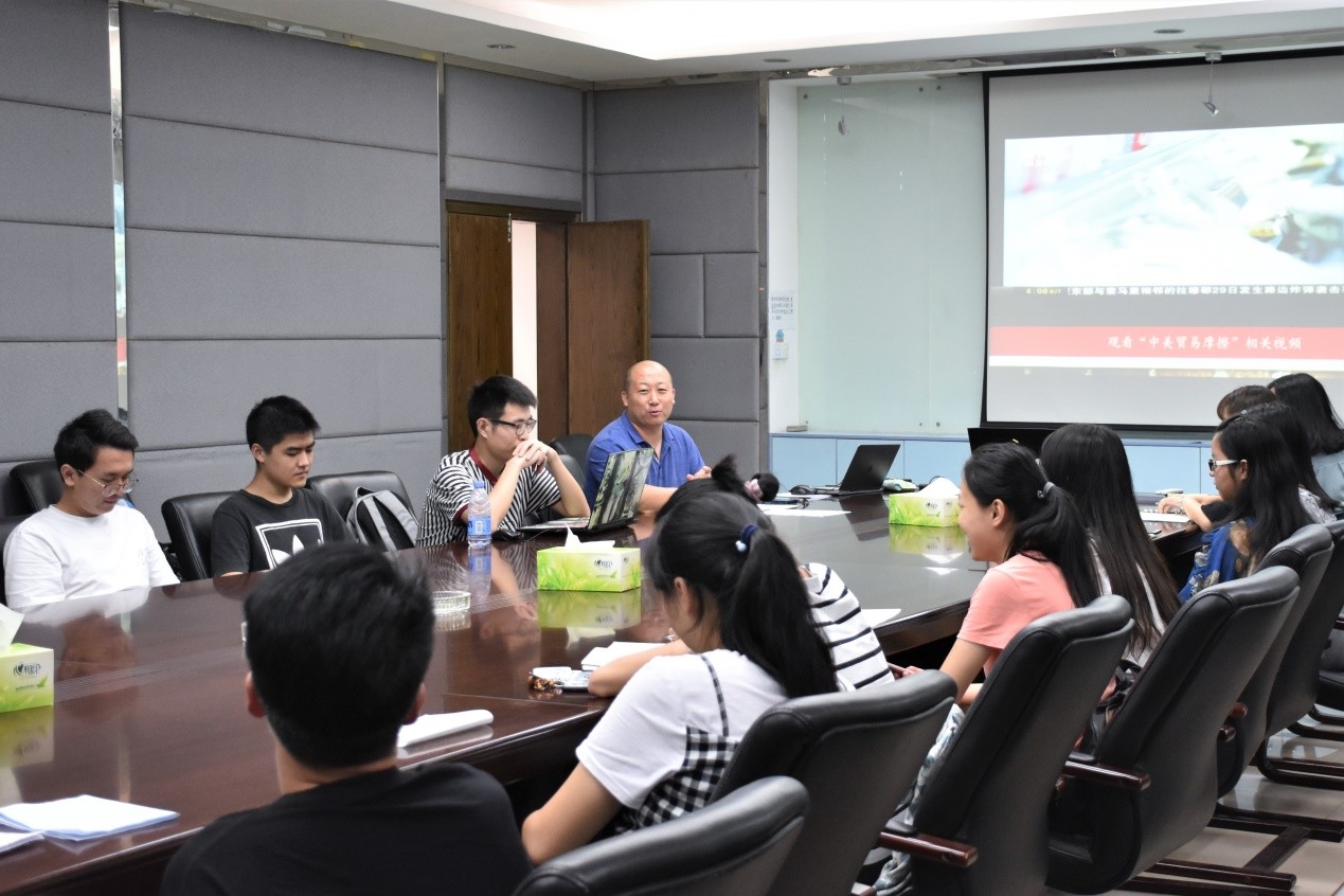 座谈伊始,大家共同观看了“中美贸易摩擦”视频短片,对事件起因和背景做了简单回顾,并通过专家的分析进一步了解到事件的本质、影响以及我们国家的应对战略。
