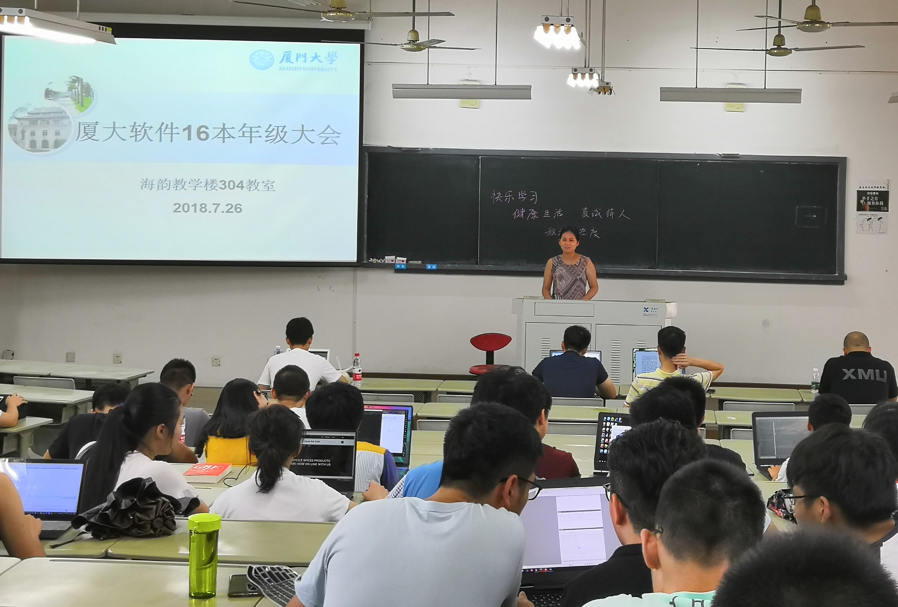 7月26日上午三四节,厦门大学软件学院2016级本科期末年级大会在海韵教学楼304教室顺利召开。