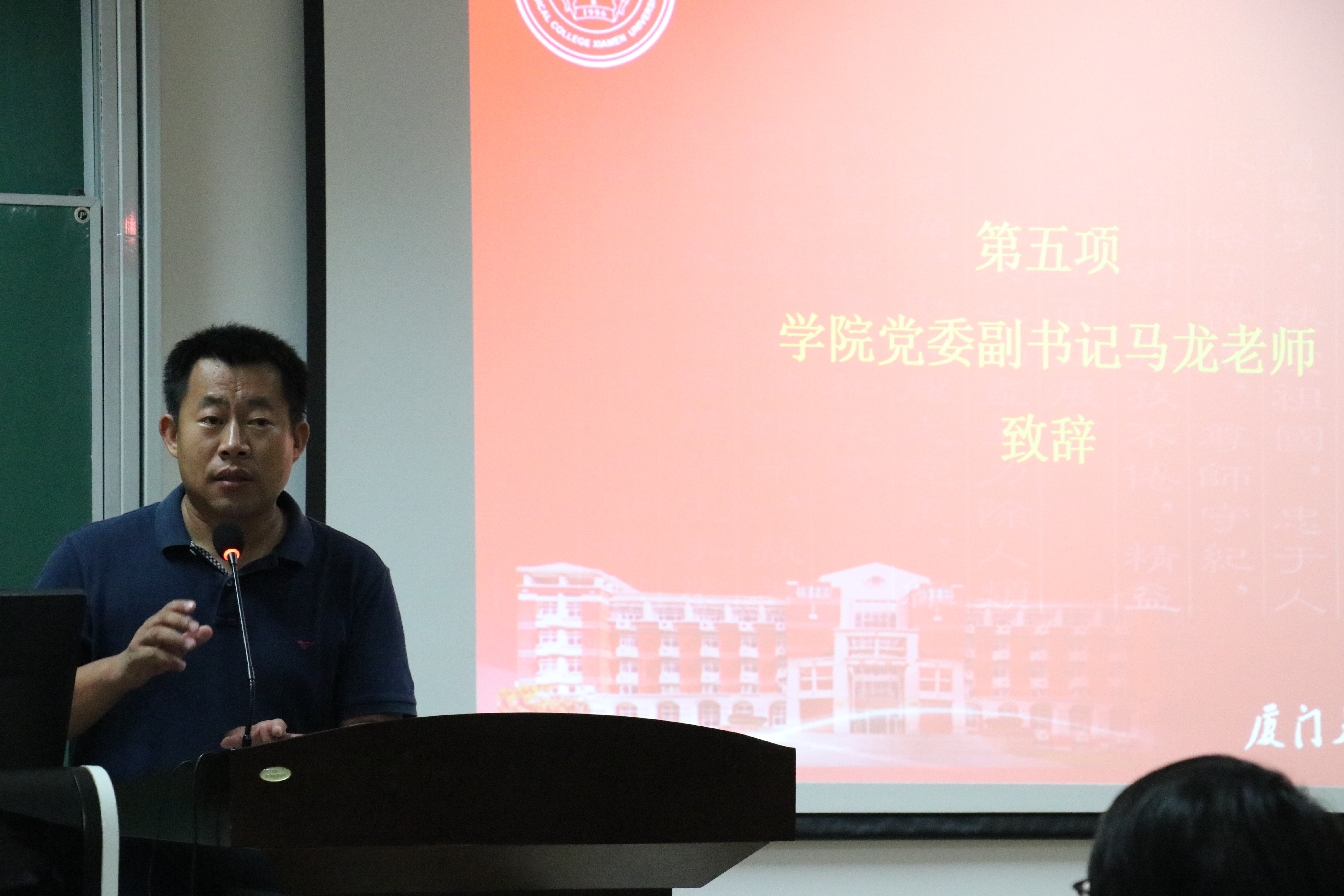 2018年7月16日晚,医学院第二十一次本科生代表大会在翔安校区爱礼楼104正式召开。医学院党委副书记马龙、杨建中,团委书记刘莉颖,副书记王骥洲,辅导员及行政人员代表出席了大会。