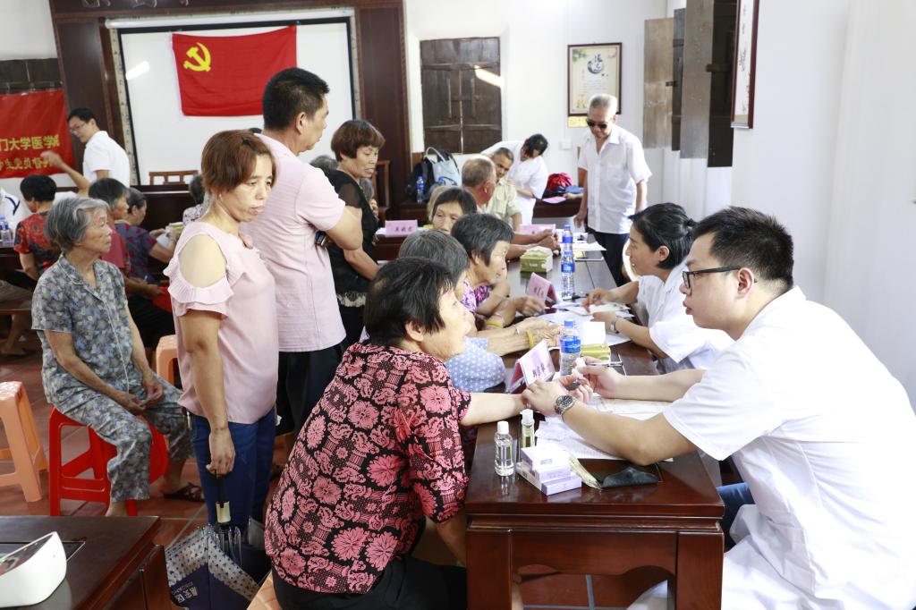 7月1日,由医学院研究生党支部、院青年志愿者协会、校园医生俱乐部组成的义诊队,前往翔安区东园社区,开展义诊服务,助力健康中国,献礼党的97周年华诞。