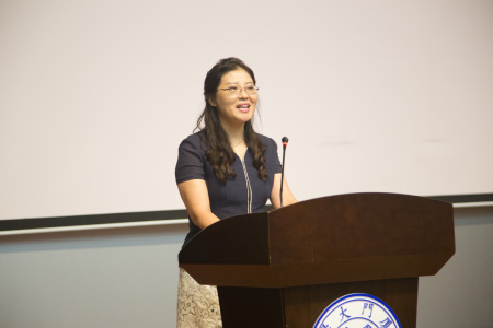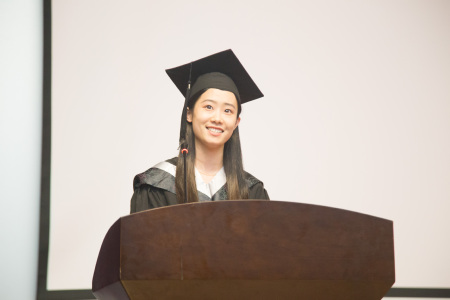 任淑敏女士作为院友代表上台发言。她结合自己的学习、创业经历,回顾了毕业之后的二十多年历程,对学弟学妹们提出了感恩母校、坚持奋斗、享受未来的期望。她希望毕业生学弟学妹们在未来能够快乐生活、快乐工作,游历半生,归来仍是少年。
