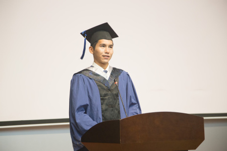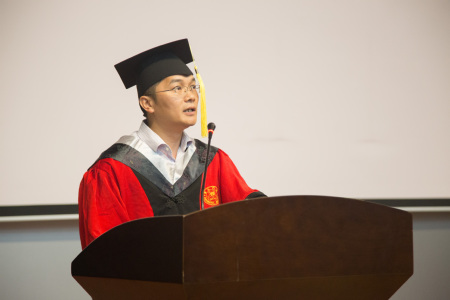 生物化学与生物技术系系主任邓贤明教授作为教师代表上台发言。他送给全体毕业生三句毕业赠言:要有感恩之情、报恩之意;要有独立批判的科学精神;要有积极乐观的人生态度。他诚挚地说,同学们都是朝气蓬勃的青年,毕业不是终点,而是青春再次奋发力量的时刻,希望全体毕业生同学能够在未来继续努力奋斗。