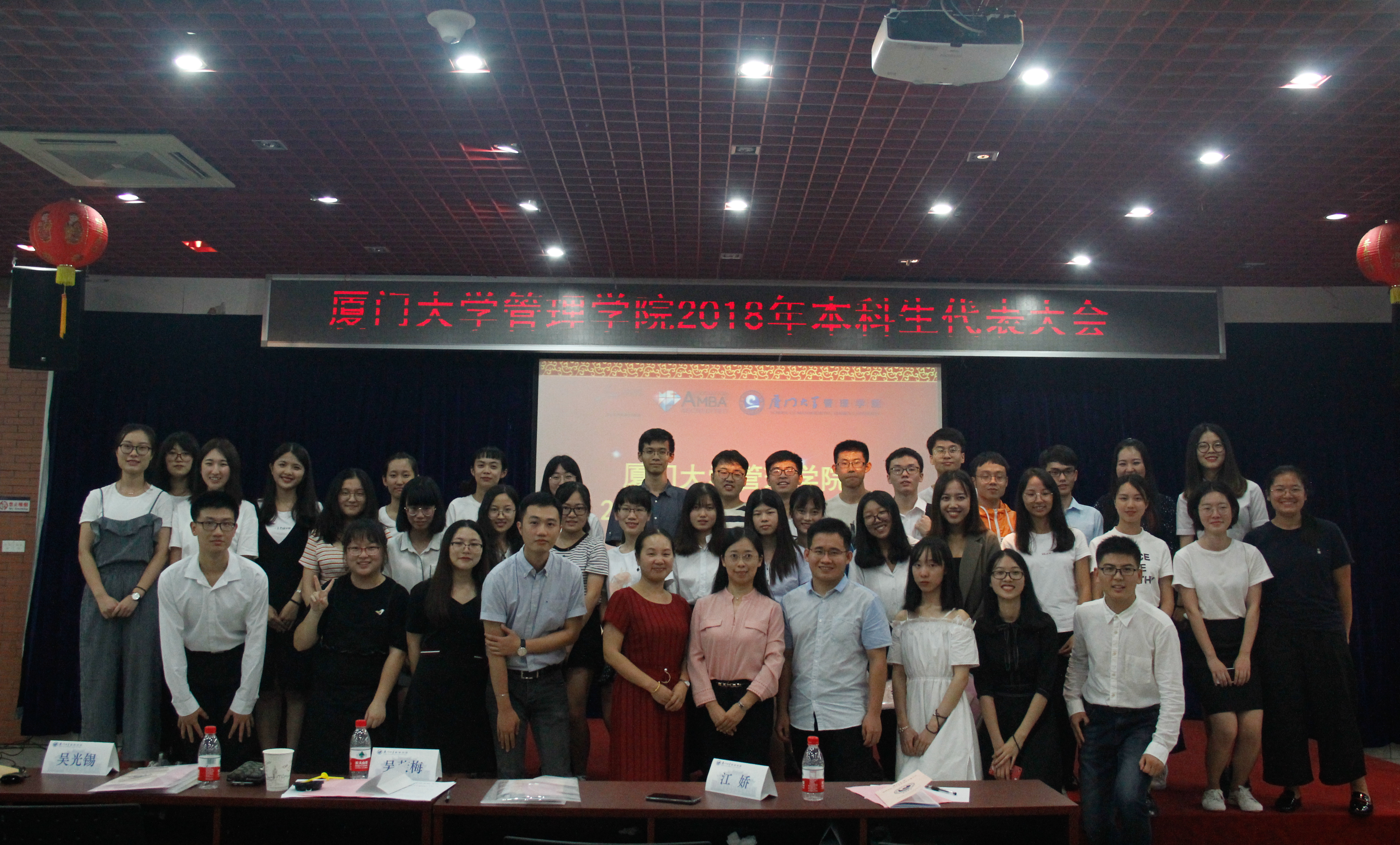 6月23日,管理学院2018年本科生代表大会在自钦楼二楼多功能厅顺利召开。本次大会共有31位候选人,27位监选人,173位来自各组织和各班级的学生代表参与其中。来到现场参与指导本次大会的领导老师有管理学院党委副书记戴蓥,团委书记江娇,团委副书记吴荣梅,团委副书记吴光锡,辅导员刘晓宇。