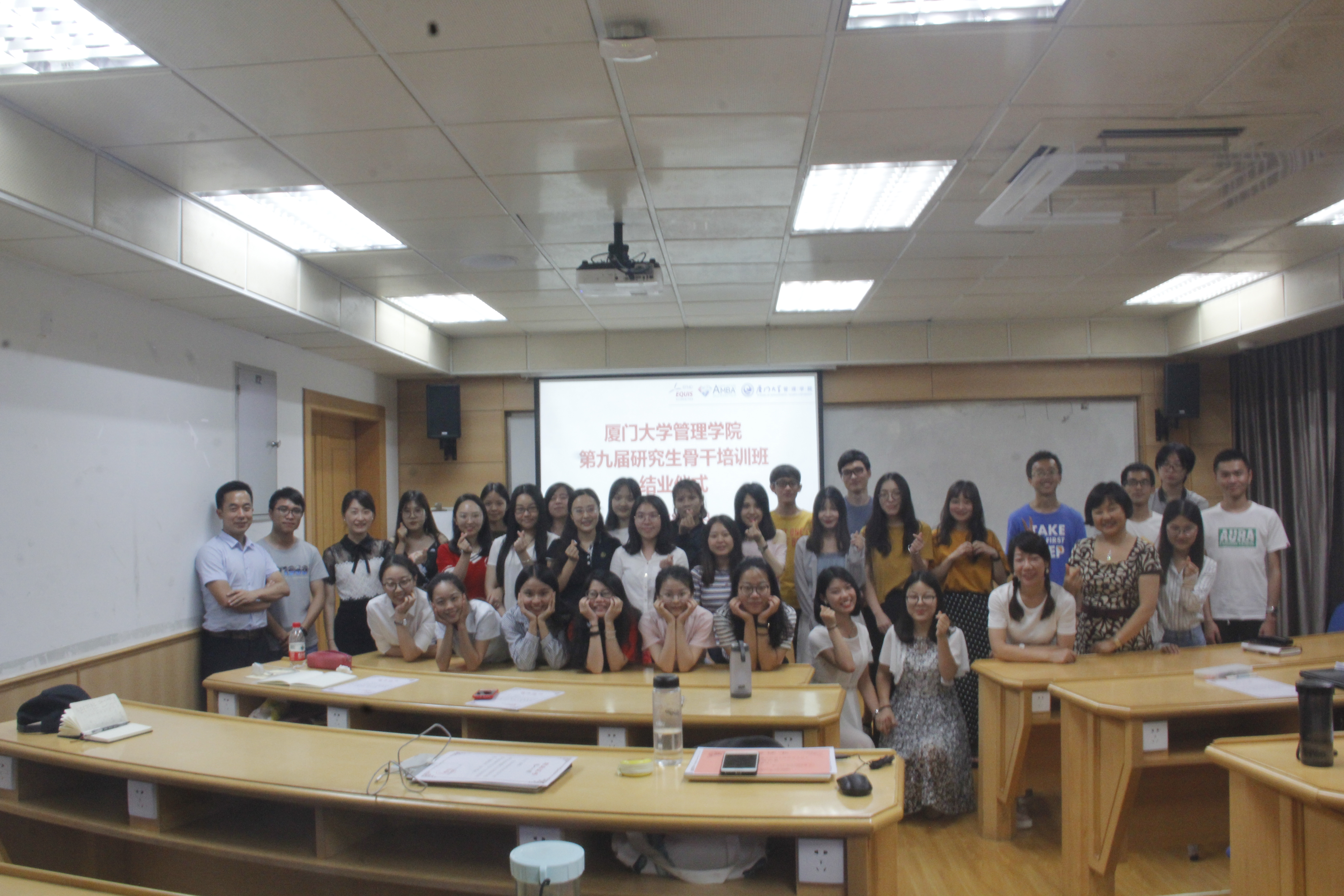 6月7日晚,厦门大学管理学院党委党校第47期培训班暨管理学院第九届研究生骨干培训班结业仪式在嘉庚二203室顺利举办。学院党委副书记洪秋霞、职业发展中心主任王燊、团委副书记周颖、辅导员揭上锋以及第九届干训班全体学院参加了结业仪式。
