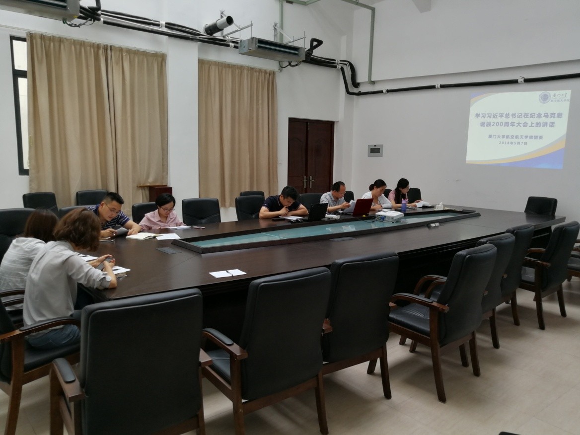 5月7日下午,为了深入学习习近平总书记在纪念马克思诞辰200周年大会上的讲话精神,航空航天学院团委组织辅导员与部分兼职辅导员在翔安校区航空大楼501会议室集中开展学习讨论。通过解读习近平总书记重要讲话,各位辅导员认真领会马克思主义的深刻内涵和时代价值,在重温马克思的崇高精神和光辉思想的同时结合大学生思想政治教育工作畅谈心得体会。