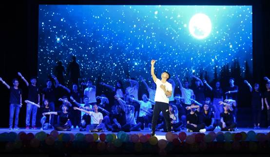 第二个游戏互动环节的内容是“猜歌名”。13位同学分三组进行抢答,为了争得唯一的话筒使出浑身解数,引得大家不禁捧腹连连。之后研究生带来一首《你曾是少年》,动听的歌声引起了大家对往昔的深深思念;大二(2)班的合唱《一生有你》跟随幽暗灯光下摇动的荧光棒缓缓而起,同学们的独舞、双人舞也艳惊四座。