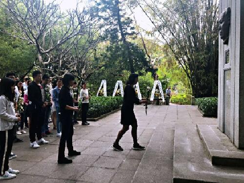 2018年4月5日上午8点,国际关系学院暨南洋研究院党委书记范丽、团委书记沈丽秀以及各个学生党支部成员、入党积极分子心怀敬仰之情来到厦门大学萨本栋校长墓碑前,低首哀悼,追忆萨先生舍身救校的事迹,缅怀萨公艰苦办学的自强精神,把深深的思念化为砥砺前行的精神力量。