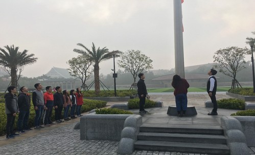升国旗不仅是一种仪式,更是一种爱国教育。同学们在朝阳中让青春的旗帜伴随着五星红旗飞扬,燃起了心中的爱国热情和奋斗的激情,在五星红旗的感召下奋勇前进,一往无前,为我们民族屹立在世界的东方贡献一份力量。