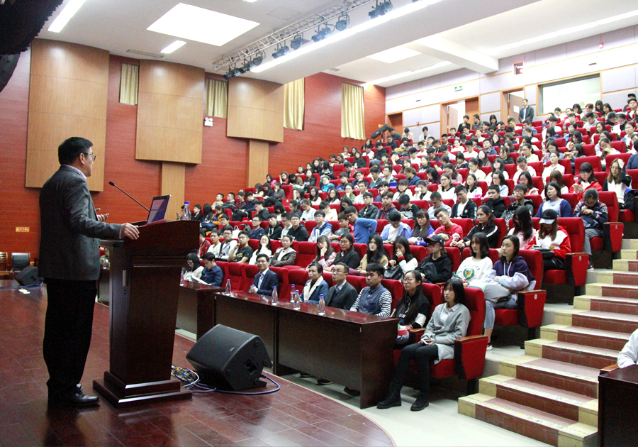 3月16日下午,海外教育学院/国际学院多功能报告厅座无虚席,管理学院蔡舜教授应邀来到学院,为师生带来了一场主题为“未来之路——互联网与商业模式”的学术讲座。本次讲座由海外教育学院/国际学院院长陶涛主持,海外教育学院来华留学生、国际学院都柏林项目会计学、金融学专业各年级本科生以及学院教师、辅导员共240余人参与了活动。