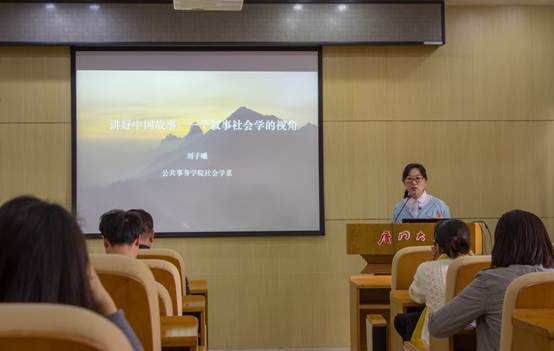 刘子曦老师担任主讲人,讲座分别从“讲好中国故事的政策脉络”,“为何要讲好中国故事”,以及“讲故事的研究者何为”这三个视角进行,刘老师深入浅出地讲授既让在场师生了解了“中国故事讲述”的现状,又引发了师生对如何更好“讲述中国故事”的思考。