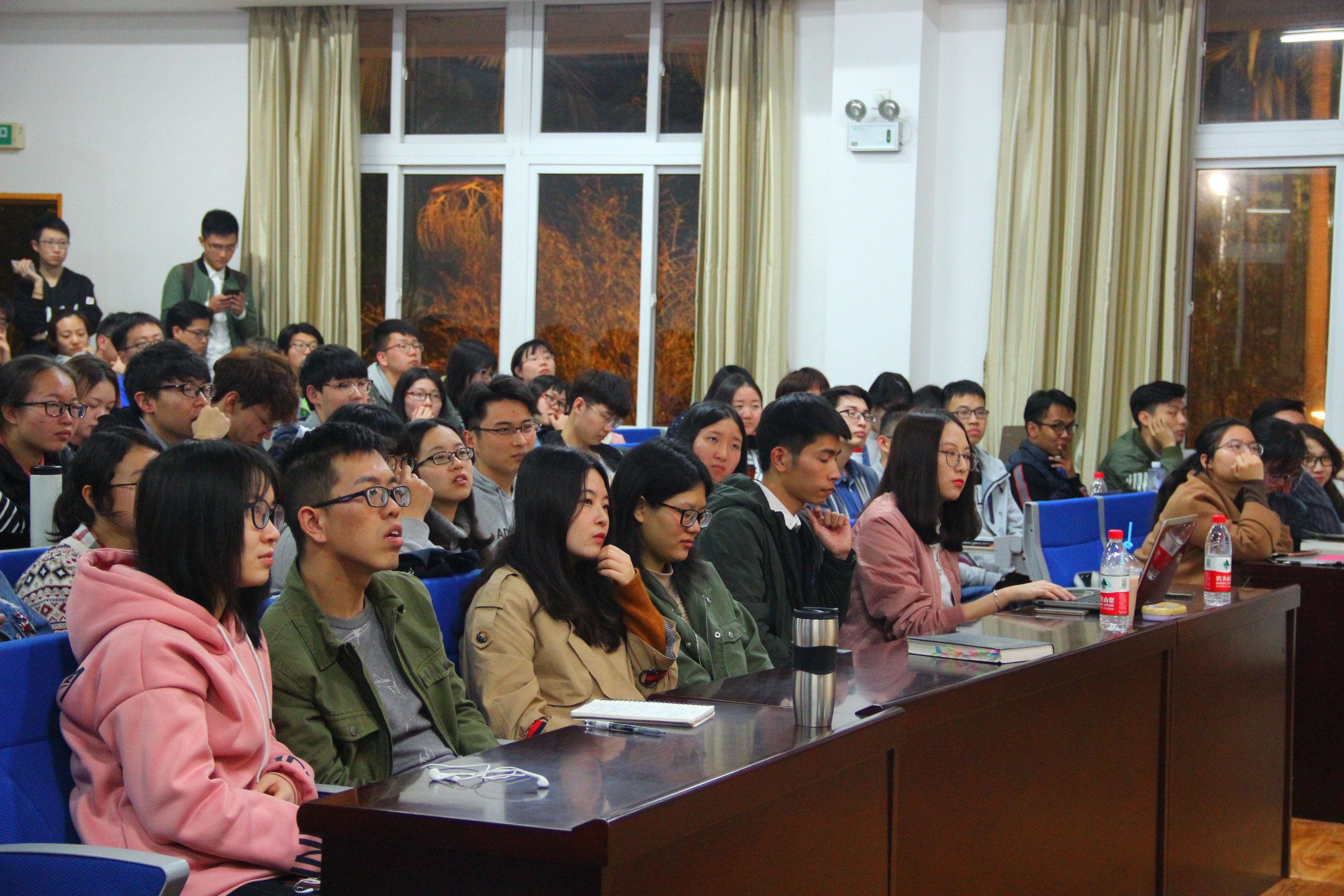 2018年3月12日晚七点,“直击法考”司考经验分享会在法学院B137教室开展。活动由厦门大学法学院团委主办,厦门大学法学院团总支学生会组织部承办,分享经验的嘉宾有:2014级本科生赵世豪、2017级国际法专业硕士李懿璇、2017级法律硕士袁健洲。分享会开始前半小时,同学们就陆续来到教室,场中座无虚席,现场气氛热烈。