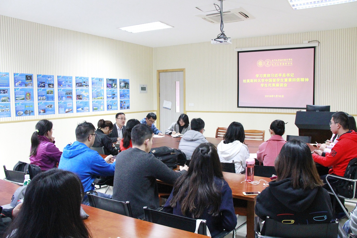 1月16日下午,学院组织政工干部、研究生、本科生代表近30人召开座谈会,通过视频聆听了习近平总书记给莫斯科大学中国留学生回信内容,畅谈心得体会,深入学习领会回信精神。