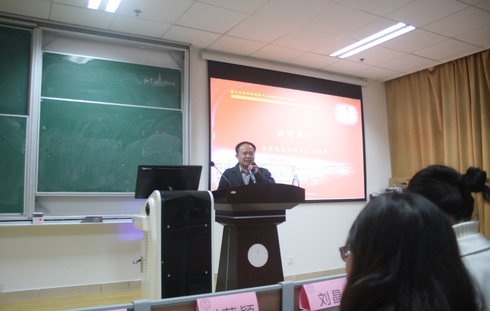 12月17日晚,医学院第十三次研究生代表大会在爱礼楼104报告厅顺利召开。出席本次大会的有院党委副书记杨建中、团委书记刘莉颖、团委副书记方晨亮、辅导员刘晶、翔安校区各兄弟学院的研究生会主席、第十二届研究生委员会委员、第十三届研究生委员会委员候选人及全体研究生代表。