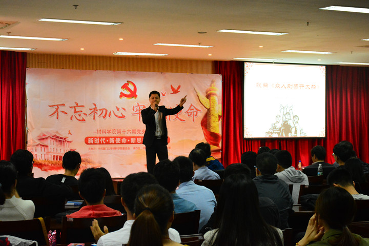 沙龙伊始,全体师生党员共同观看《新时代来啦》宣传视频,随后,2016级硕士党支部带来的《你画我猜》《谁是卧底》这两个游戏,引导大家乐想十九大报告关键词。生物材料教工党支部、材料科学教工党支部分别献唱《我的中国心》《众人划桨开大船》,慷慨激昂的歌曲掀起了现场大合唱热潮。博士生党支部党员代表围绕自身研究领域,讲述材料学子见证的砥砺奋进的五年。各支部围绕依法治国、社会主义核心价值观、生态文明建设、反腐等习近平新时代中国特色社会主义思想的内涵,或是用实验室、宿舍里的故事进行演绎,或是用求职、留学的经历进行讲解。