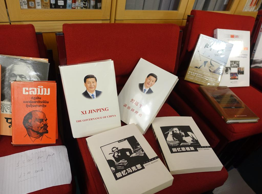 伦敦马克思纪念图书馆里展出了《习近平谈治国理政》的中英文版。