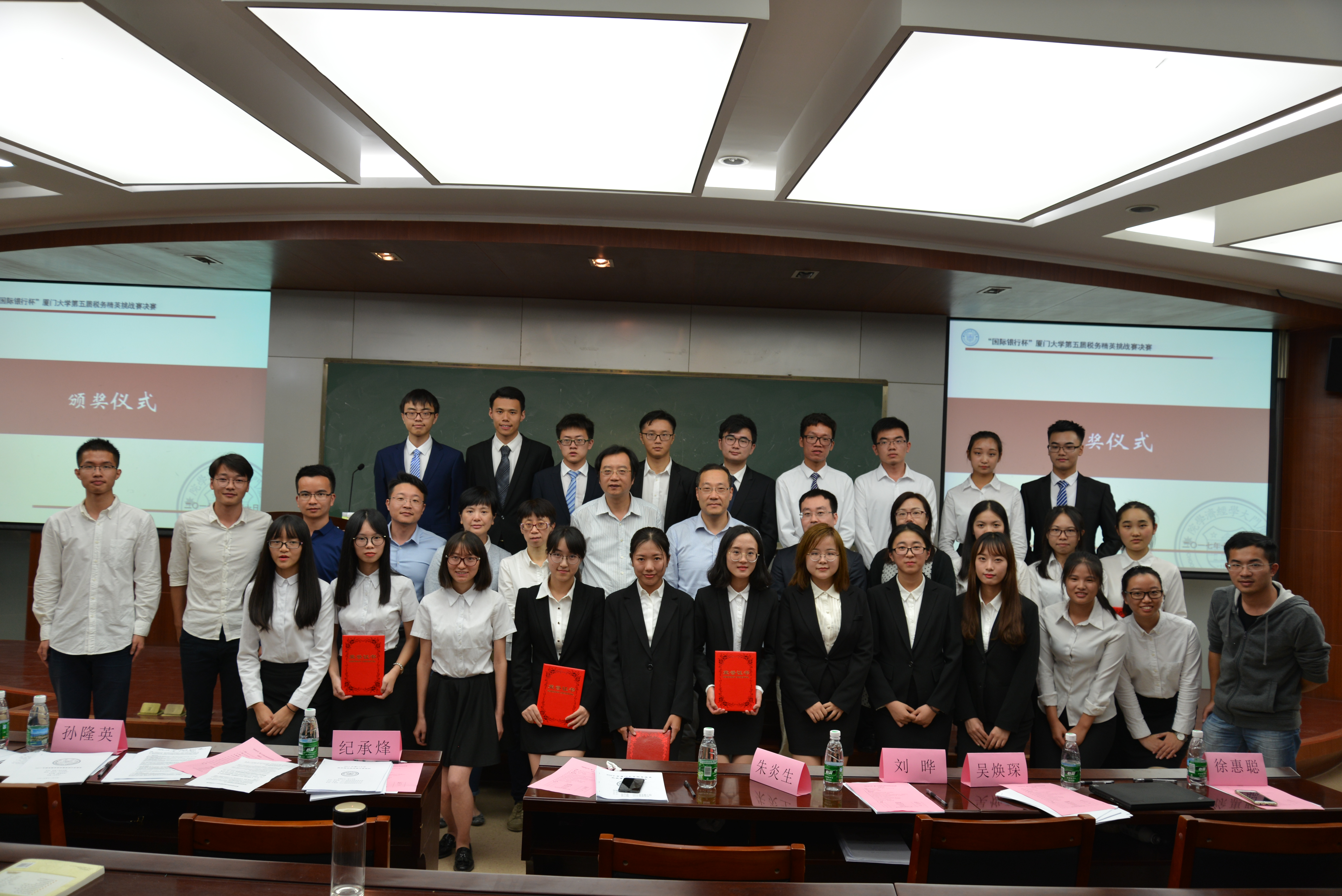 颁奖典礼过后,大赛闭幕,嘉宾评委与获奖选手合影留念。税有财wyz队、三只小天鹅队获得一等奖;税与争锋队、税到渠成队获得二等奖;wealthtax队、税税今朝队、税偷了我的奶酪队获得三等奖。
