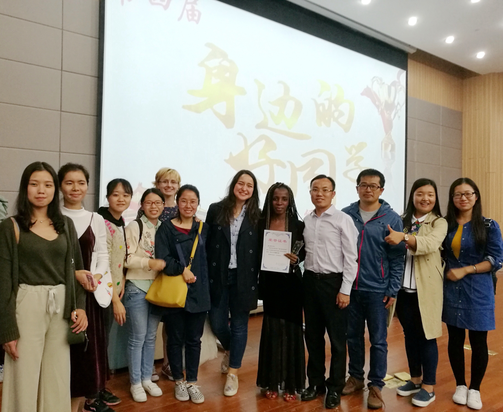 海外教育学院尼日利亚籍学生夏小丽参加了第四届“身边的好同学”厦门大学翔安校区优秀大学生评选活动。经过个人材料初审、网络投票、各学院学生代表投票、活动主委会商定等环节的层层选拔,她从51位候选人中脱颖而出,最终获得了“自强之星”的荣誉称号。海外教育学院/国际学院党委副书记伍伟平上台为她颁发奖杯、奖状,并与她亲切拥抱,表示衷心地祝贺、赞赏与鼓励。